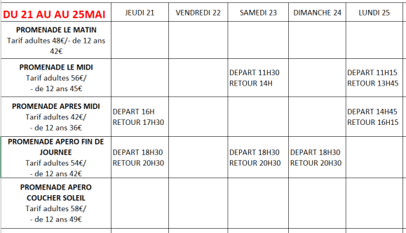 Tarifs: Enfants (- de 12 ans) 42€/ adultes 54€