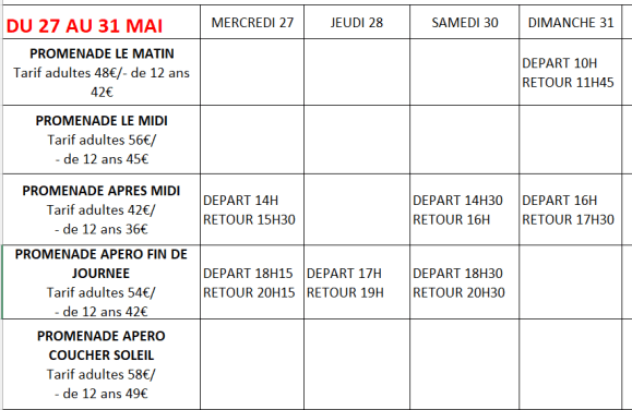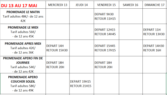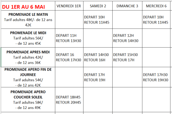 FORMULES DES PROMENADES CATAMARAN ET TARIFS EN BAS DE PAGE